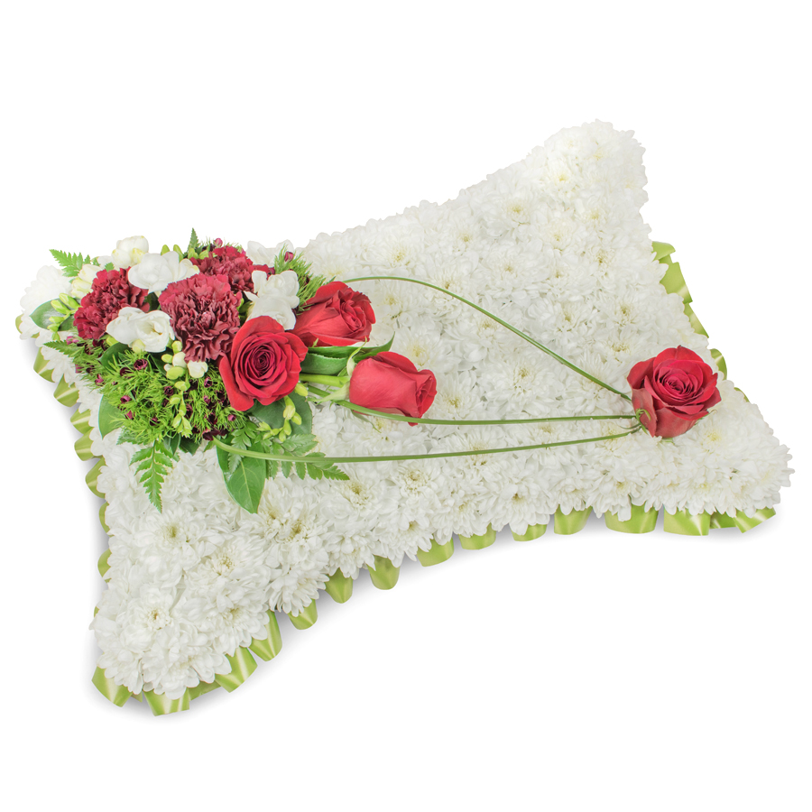 Express your deepest condolences with this artfully designed bouquet that embodies compassion and beauty. Featuring an elegant mix of white chrysanthemums, red roses, white freesias, and dark red carnations, this arrangement is further enhanced by the delicate touch of dianthus and rustic bear grass. Each flower is chosen for its superior quality and arranged with love, making it a perfect symbol of care and remembrance.